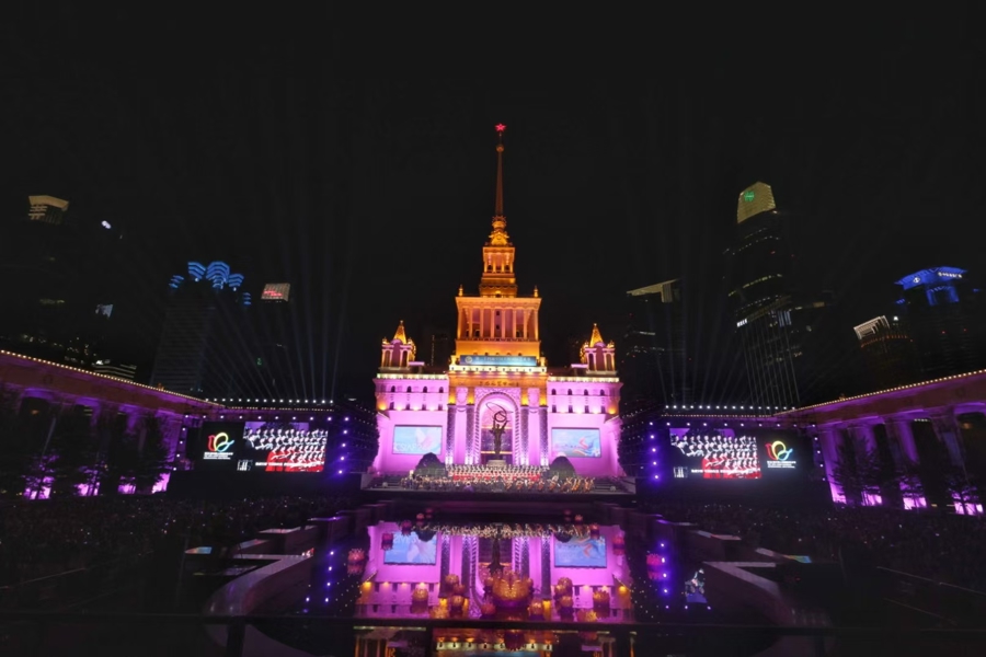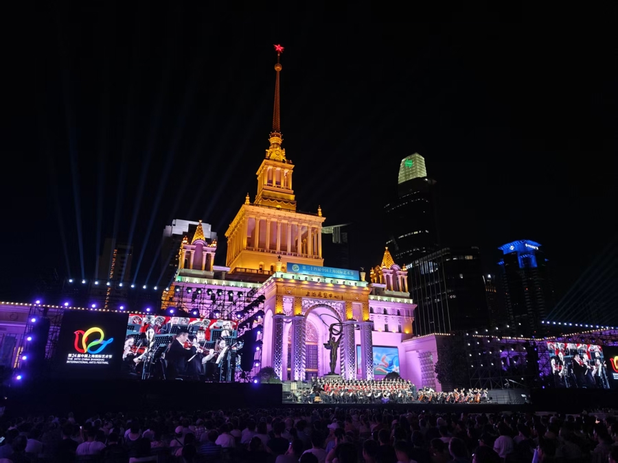 这是艺术节特别策划的惠民广场演出第三年照亮城市“艺术天空”。距离演出还有一个小时,就有观众陆续落座。上海展览中心最高处那一颗红星闪耀,成为四面八方涌来的人潮最鲜明的路标。看着偌大的广场被从全国乃至世界各地赶来的乐迷、观众、游客填满,许忠感慨万分:“音乐创造了无限的可能性。天南海北的人通过音乐在这里相遇相知,让我觉得特别幸福。未来,希望这样的音乐会不仅在广场,也能在城市各大地标,甚至五个新城举办,让更多人共享艺术盛宴。”