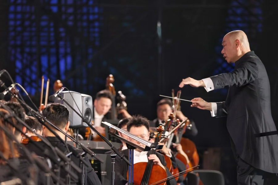 夜幕初垂,上海展览中心户外喷水池广场灯光璀璨,当第一组铜管乐的激昂旋律刺破夜空,现场近2400名市民观众屏息凝神——这场大型户外交响合唱音乐会《布兰诗歌》以最贴近大众的方式拉开序幕。作为第24届中国上海国际艺术节特别呈现,今晚的音乐会由指挥家许忠执棒,上海歌剧院、中国上海国际艺术节节日乐团倾情演绎,恢弘交响与深邃歌声回荡在这座爱乐之城的夜空。
